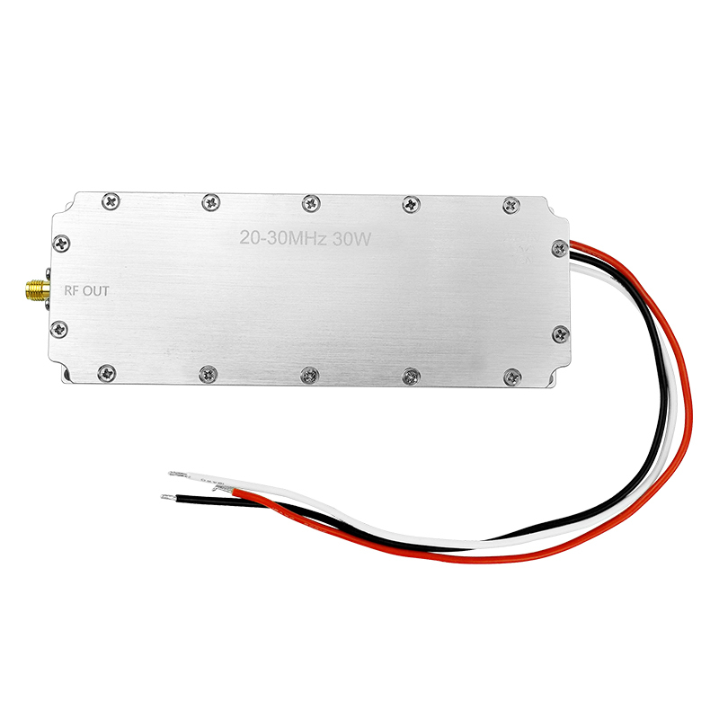 This is a customizable, high-performance RF power amplifier module .It provides 20–30W of continuous output power across a user-defined frequency band within the 20–100MHz range.This module is of the high average output power, good in-band flatness and the small offset between upper and lower side band. The frequency band and output power of the module can be customized according to customer needs.